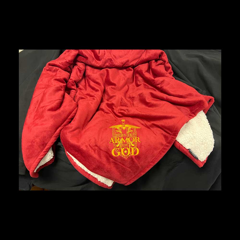EXCLUSIVE! ARMOR OF GOD - SOFT LODGE THROW BLANKET RED-GOLD