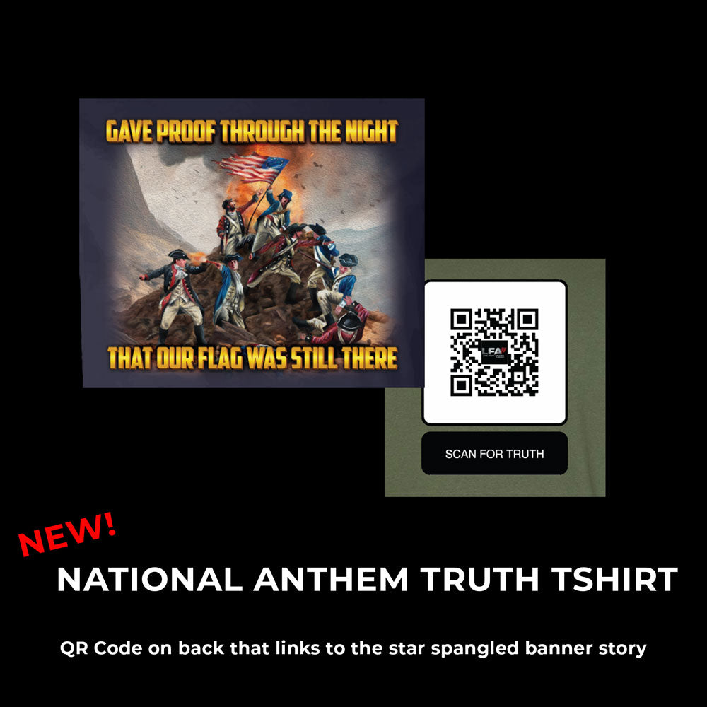 Discover the truth behind the national anthem with our new, exclusive tshirt! Scan the the QR code on the back to hear the true story behind the national anthem. Wear your patriotism with pride and educate others on this lesser-known tale. Show off your love for your country's history. LIMITED STOCK, get yours now!