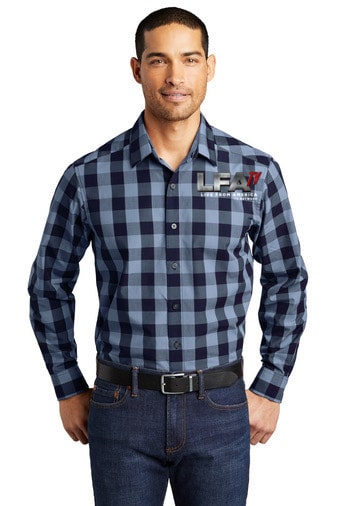 - Soft flannel long sleeve button up with LFATV embroidered on upper left chest area